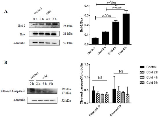 2.6. Effect of Cold Stress on Bcl-2/Bax Ratio and Caspase-3 Protein Expression