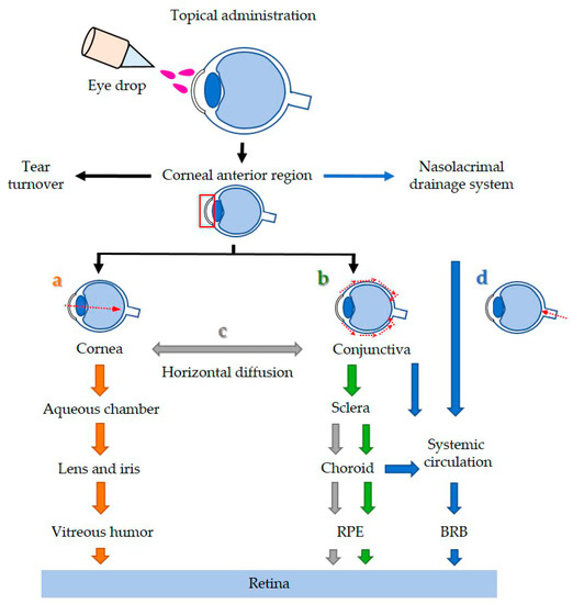 - HS Boddu, S.; Gupta, H.; Patel, S. Drug delivery to the back of the eye following topical administration: An update on research and patenting activity. Recent Pat. Drug Deliv. Formul. 2014, 8, 27–36. [Google Scholar] [CrossRef]