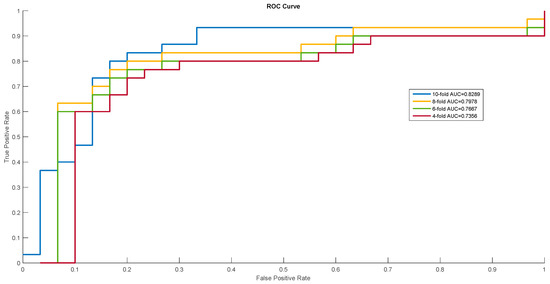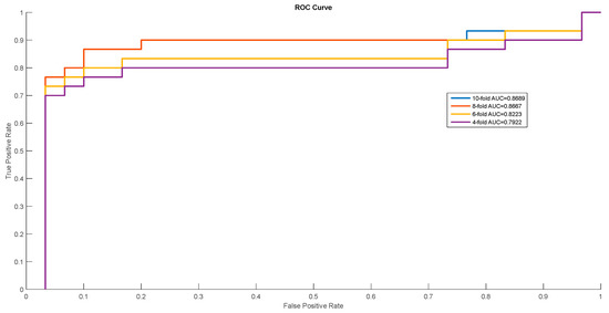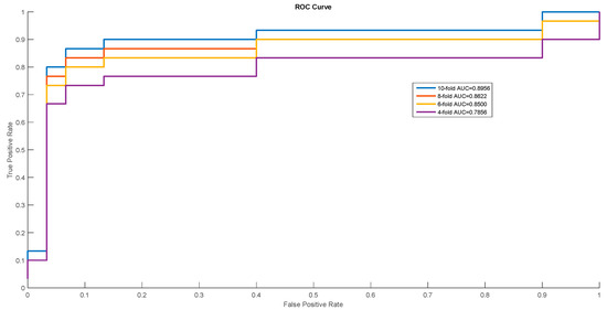 In order to show the proposed model’s stability and generalization, we utilized the ROC (receiver operating characteristic curve) curve to show the classification results. Meanwhile, some cross-validation methods (fourfold, sixfold, eightfold, and 10-fold) were also utilized. The detailed ROC curves for each species are shown in Figure 1, Figure 2 and Figure 3.