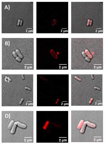 - Delcanale, P.; Pennacchietti, F.; Maestrini, G.; Rodriguez-Amigo, B.; Bianchini, P.; Diaspro, A.; Iagatti, A.; Patrizi, B.; Foggi, P.; Agut, M.; et al. Subdiffraction localization of a nanostructured photosensitizer in bacterial cells. Sci. Rep. 2015, 5, 15564. [Google Scholar] [CrossRef]