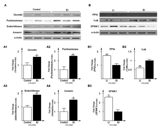 2.3. Gene Ontology Classification of Differentially Expressed Proteins