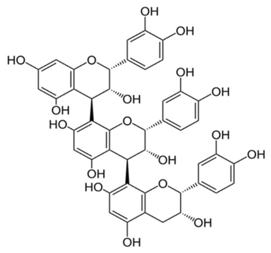 Procyanidin C1 was isolated from grape seed extract by column chromatography using a Sephadex LH-20 followed by preparative HPLC. The structure of the isolated PC-1 was confirmed by the ESI-MS method. Briefly, 50 mL of aqueous grape seed extract was loaded on a Sephadex LH-20 column, and procyanidin reach fractions were eluted with a 500 mL methanol/water solution (30:70, v/v). The fraction containing PC-1 was eluted with 500 mL acetone/water solution (70:30, v/v). The PC-1-rich fraction was further purified by preparative HPLC.