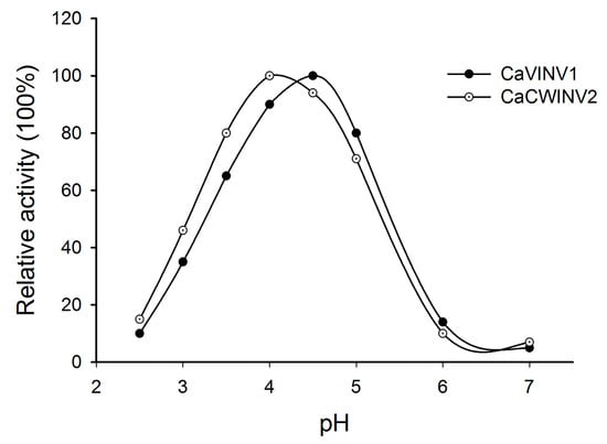 2.8. Optimum pH Determination for CaCWINV2 and CaVINV1