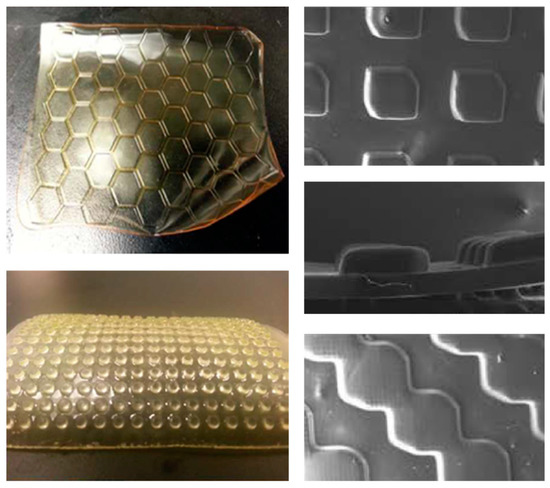 Illustrative examples (from References [52,60] of micro-patterned profiled ion exchange membranes prepared by 3D printing, (Reproduced with permission, Copyright 2016 and 2018, respectively, American Chemical Society).