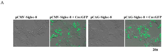 2.1. In Vitro Testing of ROSA26-Siglec-8 Constructs in HEK 293T Cells