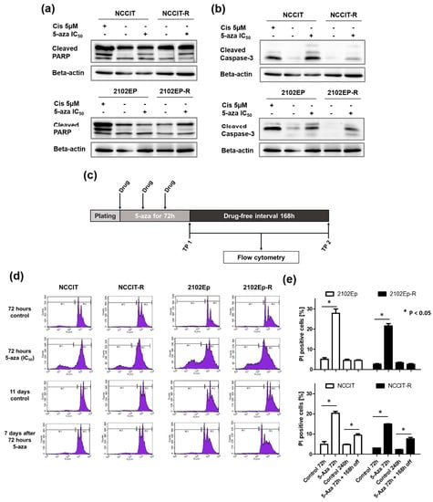 - Fenske, A.E.; Glaesener, S.; Bokemeyer, C.; Thomale, J.; Dahm-Daphi, J.; Honecker, F.; Dartsch, D.C. Cisplatin resistance induced in germ cell tumour cells is due to reduced susceptibility towards cell death but not to altered DNA damage induction or repair. Cancer Lett. 2012, 324, 171–178. [Google Scholar] [CrossRef] [PubMed]
