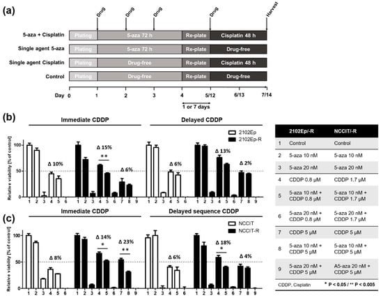 - Albany, C.; Hever-Jardine, M.P.; von Herrmann, K.M.; Yim, C.Y.; Tam, J.; Warzecha, J.M.; Shin, L.; Bock, S.E.; Curran, B.S.; Chaudhry, A.S.; et al. Refractory testicular germ cell tumors are highly sensitive to the second generation DNA methylation inhibitor guadecitabine. Oncotarget 2017, 8, 2949–2959. [Google Scholar] [CrossRef] [PubMed]