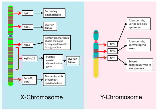 X chromosome microdeletions/deletions in the X chromosome have been associated with a variety of female infertility depending both on the arm affected and the position of the deletion within it (Figure 1).