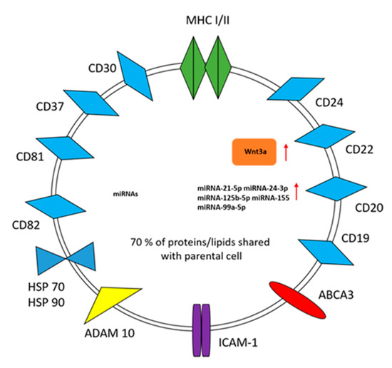 - Aung, T.; Chapuy, B.; Vogel, D.; Wenzel, D.; Oppermann, M.; Lahmann, M.; Weinhage, T.; Menck, K.; Hupfeld, T.; Koch, R.; et al. Exosomal evasion of humoral immunotherapy in aggressive B-cell lymphoma modulated by ATP-binding cassette transporter A3. Proc. Natl. Acad. Sci. USA 2011. [Google Scholar] [CrossRef] [PubMed]