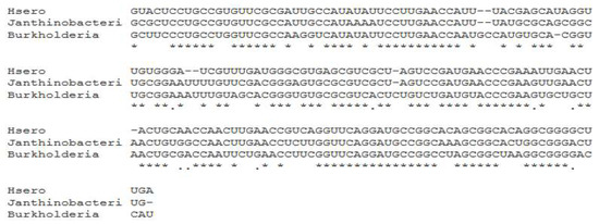 Figure 8. Multiple alignment of 6S ncRNA gene sequences by the CLUSTALW tool. Hsero = Herbaspirillum seropedicae SmR1; Janthinobacteri = Janthinobacterium sp.; and Burkholderia = Burkholderia CCGE1003.