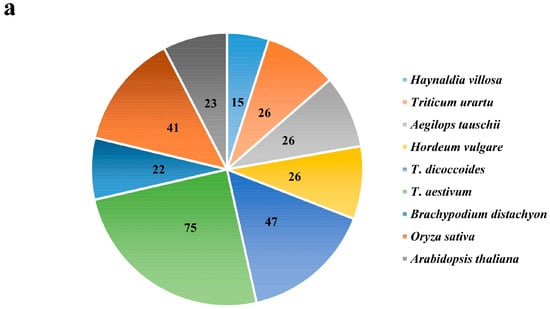 - Ling, H.Q.; Ma, B.; Shi, X.; Liu, H.; Dong, L.; Sun, H.; Cao, Y.; Gao, Q.; Zheng, S.; Li, Y.; et al. Genome sequence of the progenitor of wheat A subgenome Triticum urartu. Nature 2018, 557, 424–428. [Google Scholar] [CrossRef]