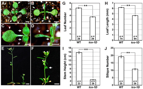2.2. Reproductive Genes Are Ectopically Expressed in tco-1D Vegetative Tissues