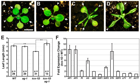- Mizukami, Y.; Ma, H. Ectopic expression of the floral homeotic gene AGAMOUS in transgenic Arabidopsis plants alters floral organ identity. Cell 1992, 71, 119–131. [Google Scholar] [CrossRef]