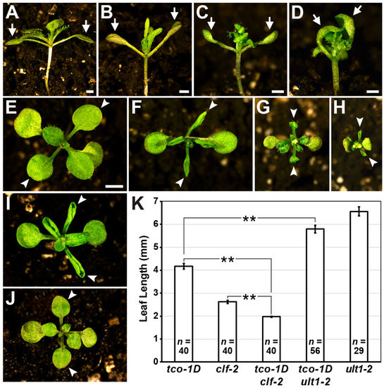 - Fletcher, J.C. The ULTRAPETALA gene controls shoot and floral meristem size in Arabidopsis. Development 2001, 128, 1323–1333. [Google Scholar] [PubMed]