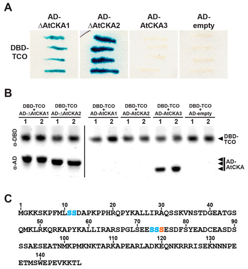 Weinman, L.M.; Running, K.L.D.; Carey, N.S.; Stevenson, E.J.; Swaney, D.L.; Chow, B.Y.; Krogan, N.J.; Krogan, N.T. TCO, a Putative Transcriptional Regulator in Arabidopsis, Is a Target of the Protein Kinase CK2. Int. J. Mol. Sci. 2019, 20, 99. https://doi.org/10.3390/ijms20010099