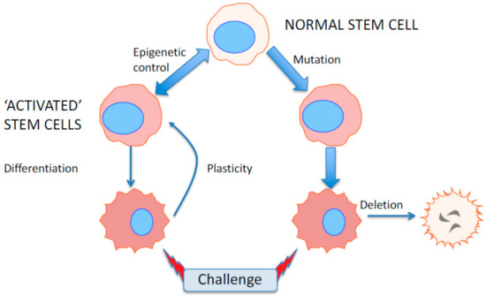 The SC state appears to be one of “active” quiescence, where expression at high levels of many miRNAs, and the existence of bivalent and/or poised chromatin (controlled by simultaneous binding of repressive and activating modified histones) indicates a cell which can react rapidly to changes in microenvironment/cell division, to produce a more differentiated daughter cell. Genomic methylation plays a less important, but not insignificant role, as SC are generally hypomethylated, with only a few clusters of hypermethylated chromatin. Some of these CpG clusters influence the SC adhesive properties i.e., sensing changes to the microenvironment, which may define fate after asymmetric division. However, the patterns of differential CpG methylation between normal and malignant cells from the same patient lie out-with the normally screened CpG “islands” can provide significant information about cellular processes involved in both carcinogenesis and differentiation, particularly if carried out on a patient-specific basis using matched normal and malignant tissues.