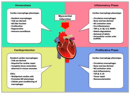 - Frantz, S.; Nahrendorf, M. Cardiac macrophages and their role in ischaemic heart disease. Cardiovasc. Res. 2014, 102, 240–248. [Google Scholar] [CrossRef]
