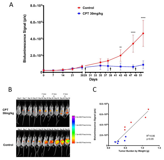 Chicago/Turabian StyleShen, Yen Ting, Lucy Wang, James C. Evans, Christine Allen, and Micheline Piquette-Miller. 2019. "Development of a Bioluminescent BRCA1-Deficient Xenograft Model of Disseminated, High-Grade Serous Ovarian Cancer" International Journal of Molecular Sciences 20, no. 10: 2498. https://doi.org/10.3390/ijms20102498