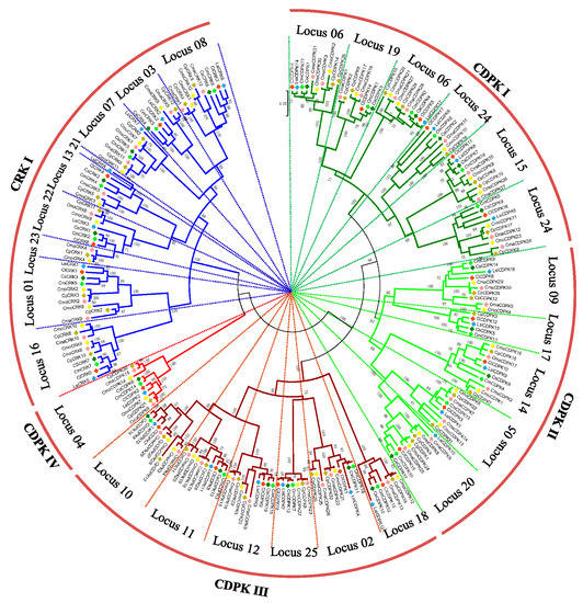2.4. Phylogenetic Analysis of CDPK and CRK Gene Families