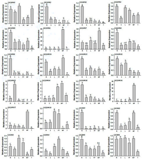 2.7. Expression Profiles of ClCDPK and ClCRK Genes in Different Tissues