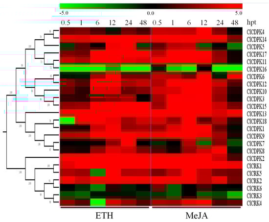 2.9. Expression Patterns of ClCDPK and ClCRK Genes under Hormone Treatments