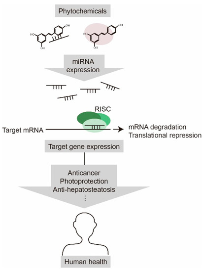 The anticancer effect is a well-known phytochemical function that is important for promoting human health [16]. We summarize the recent reports on phytochemicals that exert their intracellular anticancer effects by altering miRNA expression (Figure 1).