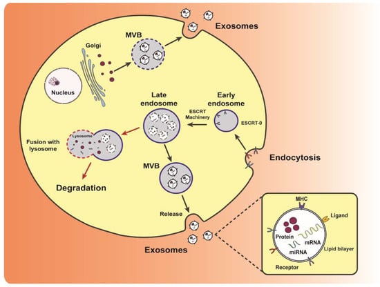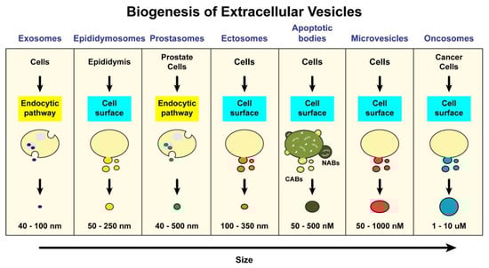 - Colombo, M.; Raposo, G.; Thery, C. Biogenesis, secretion, and intercellular interactions of exosomes and other extracellular vesicles. Annu. Rev. Cell Dev. Biol. 2014, 30, 255–289. [Google Scholar] [CrossRef]