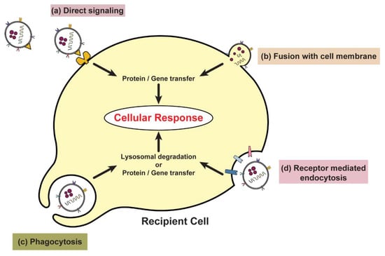 - Feng, D.; Zhao, W.L.; Ye, Y.Y.; Bai, X.C.; Liu, R.Q.; Chang, L.F.; Zhou, Q.; Sui, S.F. Cellular internalization of exosomes occurs through phagocytosis. Traffic 2010, 11, 675–687. [Google Scholar] [CrossRef]