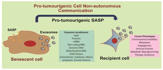 Jakhar, R.; Crasta, K. Exosomes as Emerging Pro-Tumorigenic Mediators of the Senescence-Associated Secretory Phenotype. Int. J. Mol. Sci. 2019, 20, 2547. https://doi.org/10.3390/ijms20102547