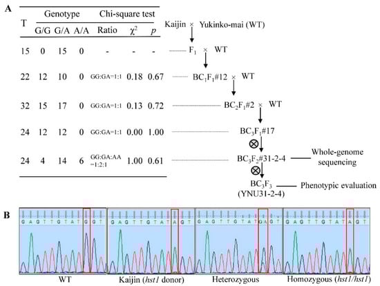 2.2. Introgression of hst1 into “Yukinko-mai” (WT) and Genotyping of Advanced Progeny Using SNP Marker
