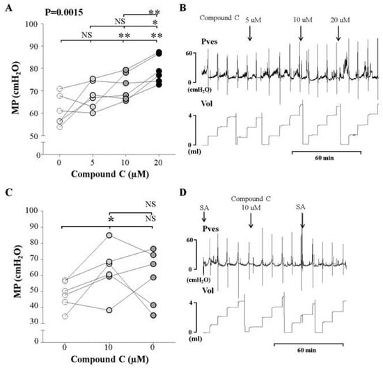Choi, B.-H.; Jin, L.-H.; Chung, D.Y.; Cho, T.J.; Kang, J.-H.; Lee, T.; Park, C.-S. AMPK Alters Detrusor Contractility During Emptying in Normal Bladder and Hypertrophied Bladder with Partial Bladder Outlet Obstruction via CaMKKβ. Int. J. Mol. Sci. 2019, 20, 2650. https://doi.org/10.3390/ijms20112650