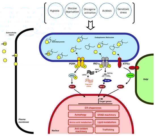 - Wang, M.; Kaufman, R.J. The impact of the endoplasmic reticulum protein-folding environment on cancer development. Nat. Rev. Cancer 2014, 14, 581–597. [Google Scholar] [CrossRef]