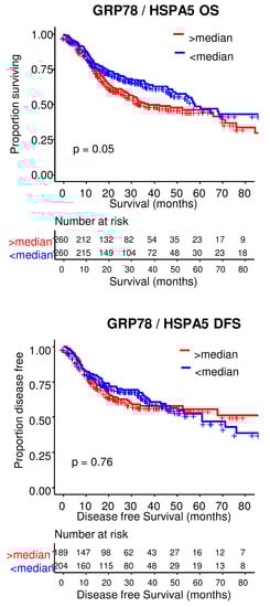 - Zhao, G.; Kang, J.; Jiao, K.; Xu, G.; Yang, L.; Tang, S.; Zhang, H.; Wang, Y.; Nie, Y.; Wu, K.; et al. High Expression of GRP78 Promotes Invasion and Metastases in Patients with Esophageal Squamous Cell Carcinoma. Dig. Dis. Sci. 2015, 60, 2690–2699. [Google Scholar] [CrossRef]
