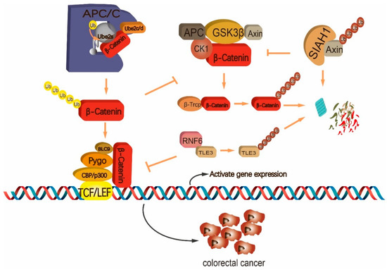 - Liu, L.; Zhang, Y.; Wong, C.C.; Zhang, J.; Dong, Y.; Li, X.; Kang, W.; Chan, F.K.L.; Sung, J.J.Y.; Yu, J. RNF6 Promotes Colorectal Cancer by Activating the Wnt/beta-Catenin Pathway via Ubiquitination of TLE3. Cancer Res. 2018, 78, 1958–1971. [Google Scholar] [CrossRef] [PubMed]