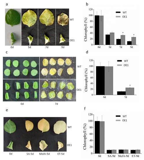 Aging is one of the most important physiological phenomena in biology, and in plants, the leaf is one of the organs most sensitive to senescence. Leaf senescence is not a passive degradation process, but a developmentally programmed process, regulated in an orderly fashion [,]. During leaf senescence, there are considerable changes in cell structure, hormone level, physiology, biochemical metabolism, and gene regulation [].