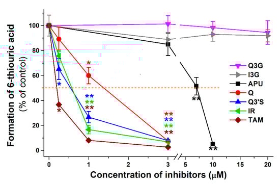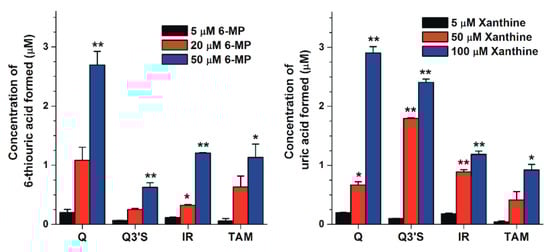 2.1. Inhibitory Effects of Q and Its Human Metabolites on XO-Catalyzed 6-MP Oxidation