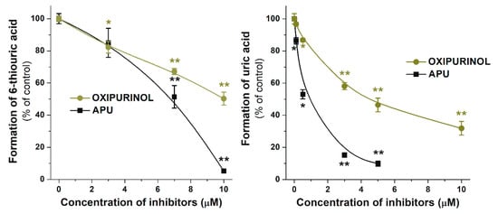 - Turnheim, K.; Krivanek, P.; Oberbauer, R. Pharmacokinetics and pharmacodynamics of allopurinol in elderly and young subjects. Br. J. Clin. Pharmacol. 1999, 48, 501–509. [Google Scholar] [CrossRef]