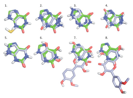- Lin, C.M.; Chen, C.S.; Chen, C.T.; Liang, Y.C.; Lin, J.K. Molecular modeling of flavonoids that inhibits xanthine oxidase. Biochem. Biophys. Res. Commun. 2002, 294, 162–172. [Google Scholar] [CrossRef]