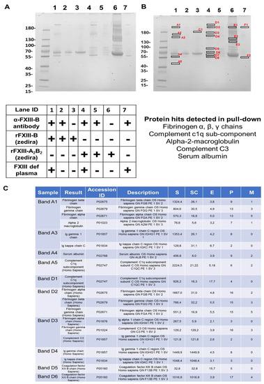 2.3. In a FXIII Deficient Background, FXIII-B Pulls Down Fibrinogen, Few Complement Proteins, and Alpha-2-Macroglobulin