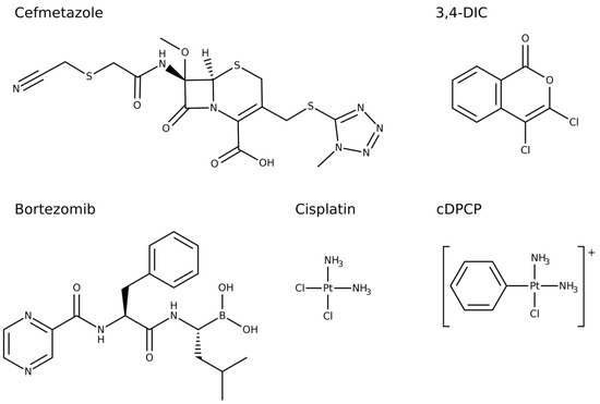Subsequently, the cytotoxic potential of the novel ClpP inhibitors and Z-LY-CMK against three human cell lines HTC-116 (colon), MCF-7 (breast), and A549 (lung) was assessed using a luminescent cell viability assay. Here, bortezomib revealed as highly toxic against all tested cell lines, even at the lowest tested concentration of 3.4 nM (Table 2). The already known ClpP inhibitor Z-LY-CMK emerged as highly toxic against all cell lines as well. Compared to their ClpP inhibitory potency, cDPCP, 3,4-DIC, and cisplatin also proved as toxic against all tested cell lines, as the ratio of IC50 values obtained for cell viability and ClpP inhibition was small (<10), except for cisplatin tested against HTC-116 cells (~29). In contrast, cefmetazole did not show any relevant cytotoxicity as the ratio was between 74 and 1597.