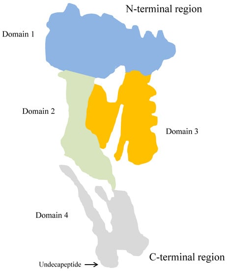 The known secondary and tertiary structures of some CDCs shows a significant similarity []. A crystal structure of the PLO molecule presumably is homologous to the structure of other CDCs. The tertiary structure model of PLO, based on the perfringolysin O (PFO)—PLO sequence alignment—was proposed by Pokrajec et al. []. The monomeric PLO molecule is rich in β-sheet elements and consists of four domains (D1 to D4), of which D2 and D3 are packed against each other, while D1 is located at the N-terminal and D4 at the C-terminal end of the molecule (Figure 4).