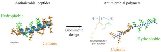 The structural similarities between antimicrobial polymers and antimicrobial peptides. Image was adapted with permission from [].