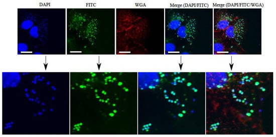 Silver nanoparticles (AgNPs) alone have a well-established use in the treatment of bacterial infections. AgNPs show an efficient antimicrobial property due to their extremely large surface area, which provides better contact with microorganisms []. Wen-Ru et al. have studied the antibacterial activity and acting mechanism of AgNPs on E. coli [,]. The authors investigated the growth, permeability, and morphology of the bacterial cell wall following the treatment with AgNPs. Their results showed that, based on transmission electron microscopy (TEM) imaging, the bacteria membrane vesicles were dissolved and dispersed, and the membrane components became disorganized and scattered from their original ordered and close arrangement []. These observations suggested that AgNPs may damage the structure of the bacterial cell membrane and depress the activity of some membranous enzymes. Studies have also shown that AgNPs are able to interact with sulfur-containing proteins present in the bacterial membrane, in the same way as they can interact with phosphorus groups present in the cell DNA []. AgNPs seem to preferably attack the respiratory chain, and cell division.