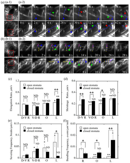 2.5. Longitudinally Oriented Actin Filaments Tend to be Destroyed by Severing and Depolymerization in Guard Cells of Open Stomata whereas They Tend to be Retained in Guard Cells of Closed Stomata