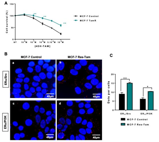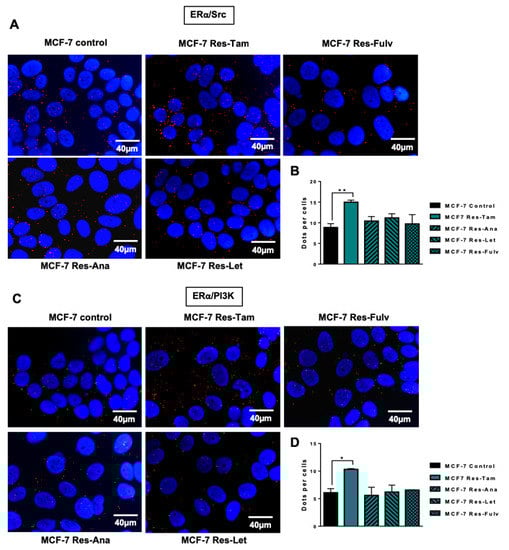 2.3. ERα–Src–PI3K Interaction in MCF-7 Cells Resistant to Endocrine Therapy