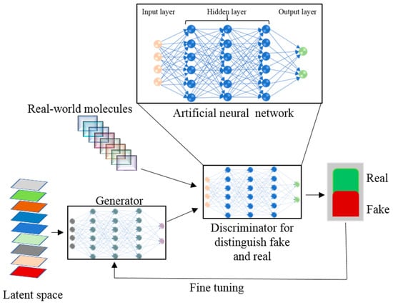 A workflow of the generative adversarial network approach with an artificial neural networks (ANN) for new molecule design.