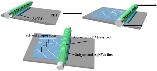 - Kumar, D.; Stoichkow, V.; Brousseau, E.; Smith, G.C.; Kettle, J. High performing AgNW transparent conducting electrodes with a sheet resistance of 2.5 Ω∙sq−1 post-processing technique. Nanoscale 2019, 11, 5760–5769. [Google Scholar] [CrossRef] [PubMed]