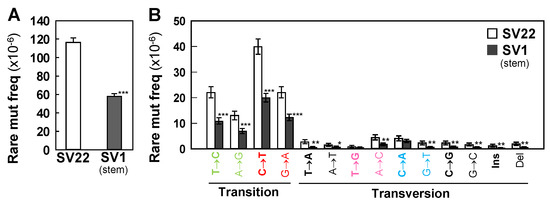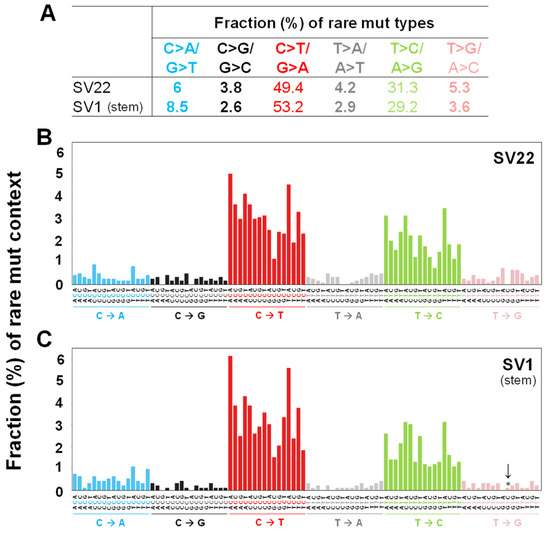 2.2. SV1 Cells Show Significantly Lower Frequencies of Rare Mutations and Subclonal Mutations than do SV22 Cells