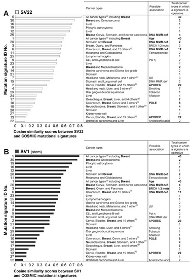 2.4. The Mutation Context Spectra of the Whole mtDNA Rare Mutations in SV22 and SV1 Cells are Compared with the Mutational Signatures of the Catalogue of Somatic Mutations in Cancer (COSMIC)