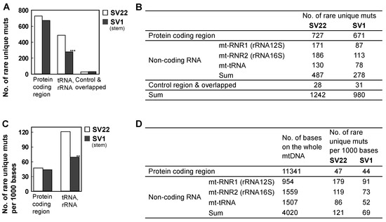 2.7. Proportions (%) of Nonsynonymous Mutations in Mitochondrial Protein Coding Regions and Their Predicted Pathogenicity Scores of Subclonal Mutations are Similar between SV22 and SV1 Cells
